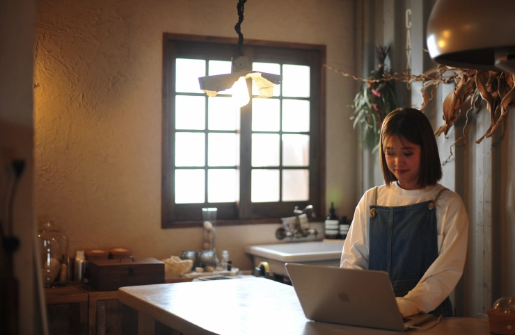 普段は、オフィスに隣接しているキャンドルショップで販売やバックオフィスの仕事をしています。入社のきっかけは、子育てしながら働きやすい時間帯だったこと。あとインテリアが好きで、ショップの空間が素敵だなと思ったことも入社理由の一つです。